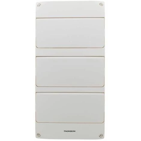 THOMSON Coffret électrique nu a équiper – 39 modules – 3 rangées – Idéal pour un T3/T4/T5 – Design sobre et discret – Livré avec trois portes – Conforme a la norme NFC15-100 – Ouverture/fermeture par 4 vis 1/4 de tour imperdables – 13 modules par rangée – Compatible GTL toutes marques – Tenue au fil incandescent 650°…